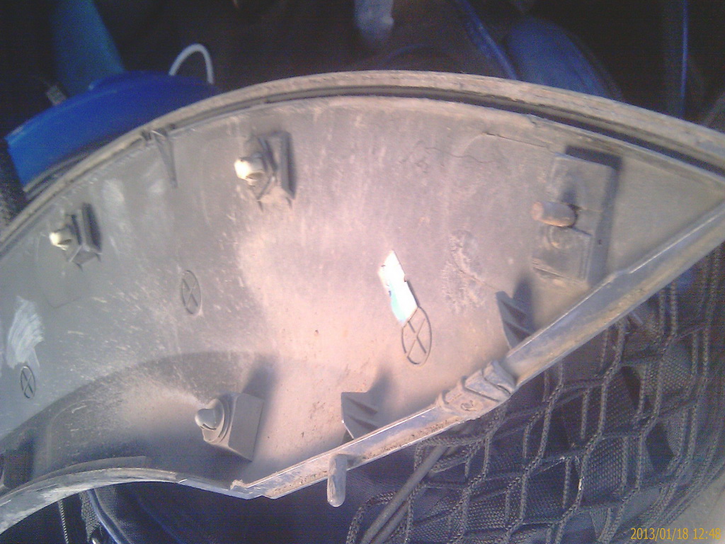 Передняя часть накладки. Справа виден болт крепления накладки к крылу. Откручивается он после снятия фары.