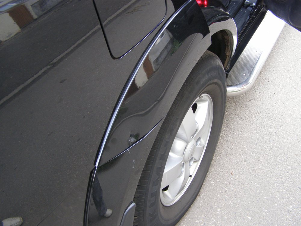 Перед тем как получить машин папик успел прицепом стукнуть накладку на крыле и получилась вмятинка.