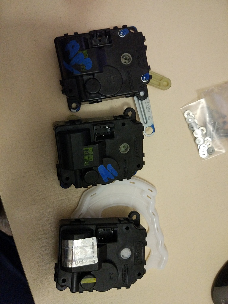 ребята на рестайле 3 привода управляющие заслонками одинаковые. если у кого то появились щелчки и кто то решил поменять привод. Можно купить с разбора приводы подачи воздуха на печку (так как они думаю меньше изношены) и переставить шестерни от туда.