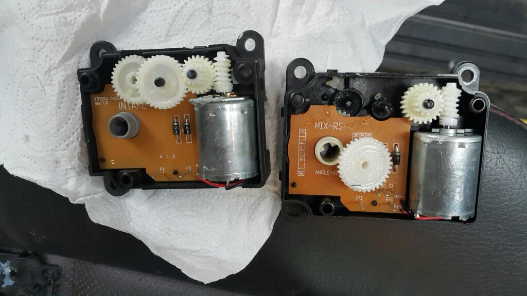 Привода одинаковые. Отличие только в пластиковых рычагах, которые на них крепятся. Только что разбирали торпедо. Замучили щелчки. По итогу пришлось сам пластиковый короб печки менять, т.к. повело от времени или хз от чего ось заслонок и никакие подпиливания управляющей заслонки, описанные на форуме, не помогли