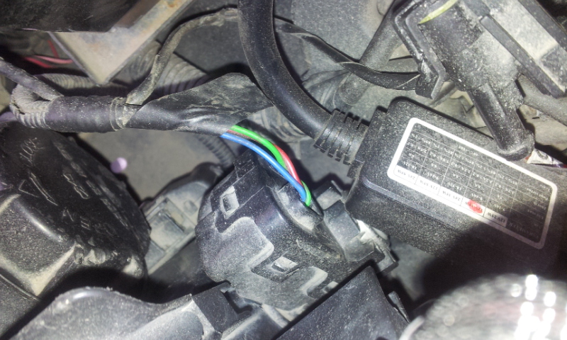 Всё это дело уходит в общий жгут проводов питания фары.