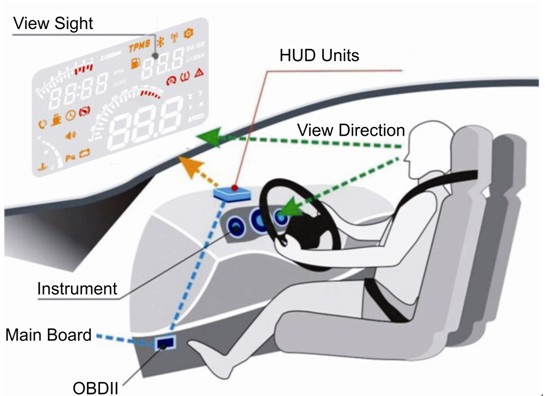 It is using optical reflection principle, reflect the important driving data to the front glass of the vehicle. This device are placed under the windscreen of the vehicle, via OBD cable to receive the vehicle ECU data, timely and accurate read the speed/rotation speed/fuel data and so on. Then, project it onto the front windshield so that drivers no need to look down and can be read real time!