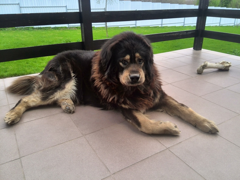 Сегодня разговаривал с руководительницей питомника, мягко поинтересовалась, как дела у Лордика, а потом рассказала, что на передержке тибетский мастифф, потеряшка, хозяев ищут, пока неудачно, кобель, около трех лет, черно-бежево-красный.