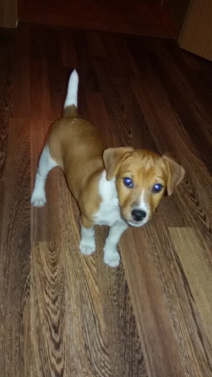 Други, долго думал (ранее были в основном только Ягдтерьеры), долго искал (многие питомники были рассмотрены) и все таки остановился на питомнике Пес-Аристократ..В пятницу 19 июня, в семью Андреевича вступил данный щенок. Знакомтесь: Джек Рассел Терьер, по паспорту Е-609(Ермак), а в простонародье Буба Касторский, он же просто Бублик. :lol: