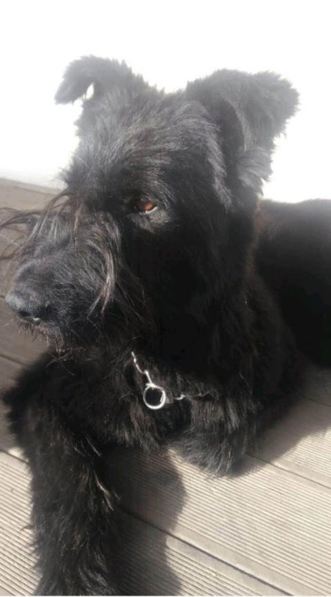 В силу изменившихся семейных обстоятельств пристраивается молодой кобель по кличке Найт (Нюша), метис ризеншнауцера (мама – ризен, папа неизвестен), возраст 1 год, вес около 25-28 кг. Есть ветпаспорт, не чипирован, не кастрирован, купирован полностью, по здоровью проблем нет. Парень проживает в квартире, ничего не портит, один дома остаётся спокойно, разве что может поскулить немного, когда все уходят. Может растаскивать разбросанные мягкие игрушки детей. Бывает, голос подаёт, когда в подъезд кто-то заходит, обозначая, что дом на охране, но соседи никогда не жаловались, так что это эпизодически. Пёс прекрасно общается с двумя детьми дошкольного возраста, с которыми проживает в семье, дети и собака могут долго играть и общаться самостоятельно. С кошками своими тоже хорошо, но в силу молодости иногда излишне достаёт на предмет поиграть, если кошка не даёт достойный отпор, уличных кошек толком и не видел, поэтому неясно - погонит или нет. С другими собаками, если это суки, весело играет, пытается доминировать, остро реагирует на течных, может "променять" подзыв на "метку", но это корректируемо воспитанием. К большим и сильным кобелям задирается, спокойных игнорирует. К незнакомым людям и детям проявляет незначительный интерес. Дома абсолютно не агрессивен. Место и еду не охраняет. При двухразовом выгуле по 1,5 часа дома не метит. Очень общительный и ориентированный на человека, ходит хвостиком за кем-то по дому, любит «поболтать». Учит основные команды, играет с палками, в мяч. В машине ездит хорошо, в салоне. На поводке на «отлично», но боится салютов до паники, если услышит, сразу напрягается и пытается убежать. Не тримминговали, но выбривали юбочку и уши – все манипуляции спокойно разрешает. Пристраивается в квартиру или частный дом, но не на цепь.