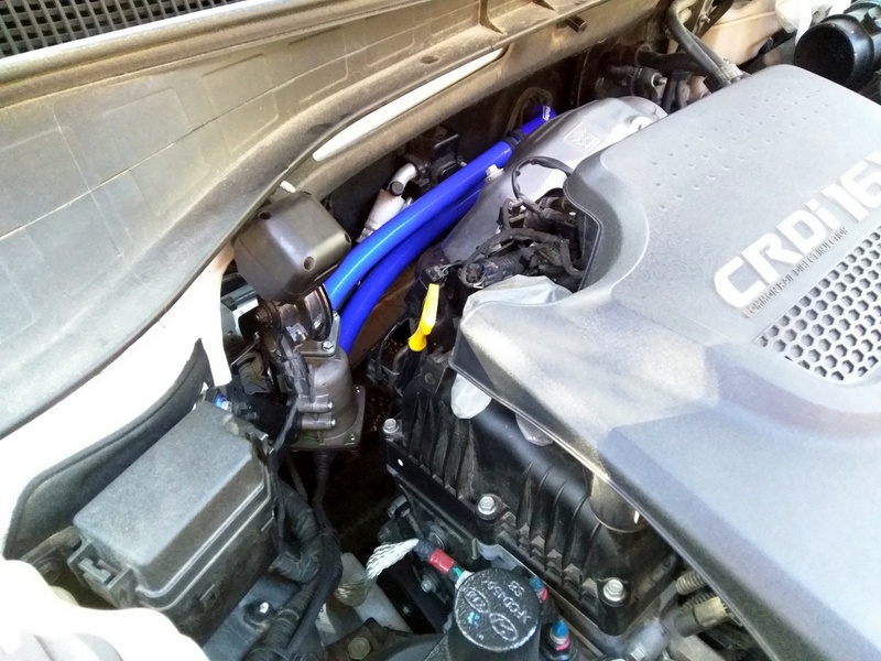 Из того, что пришлось демонтировать – патрубок от фильтра к турбине, без этого добраться можно, но неудобно. Ну и правый передний локер, чтоб вывести разъём. На фрил ставил Дефа, там бамперный разъём на 5+, здесь – жуткая жуть, особенно крышка, нужно будет окультурить..