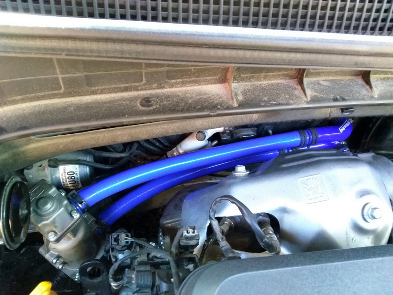 Единственное подходящее место – справа от двигателя. Самый гемор – сделать крепеж, чтоб выглядел колхозно по минимуму.. час наверно угробил, чтоб спрофилировать железяку нужного размера и формы. Крепится двумя болтами М6, конструкция весьма жесткая. Трубки – взял одну из комплекта 20мм, вторую случайно прикупил 18мм, тоже дюрит, по тому же ГОСТу. Для залома на 90гр поставил медные уголки под пайку, мамы, внутренний 18мм.. чтобы шланг не сдернуло давлением по внешней кромке нарастил буртик припоем.. вид не ах, заказал силиконовые трубки с уголками на али, + поставлю пружинные хомуты. Да, штатные трубки – 19мм.