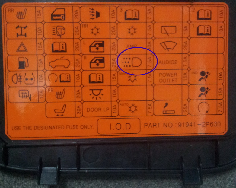 1. в блоке предохранителей под рулевой колонкой есть предохранитель (в моем случае №20), 7.5А. У меня он был штатно установлен.