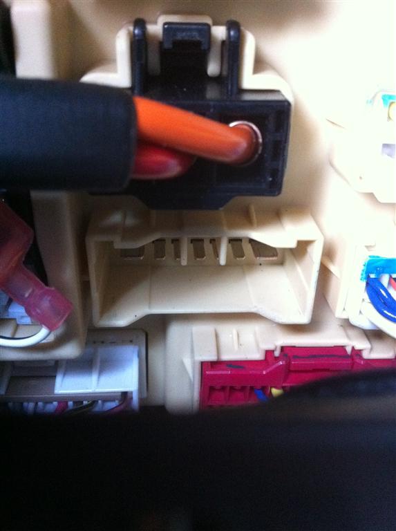 3. Вынимаем из него коннектор и наблюдаем, что провод №10 как-раз отсутствует, т.е. цепь разорвана, DRL деактивирован.