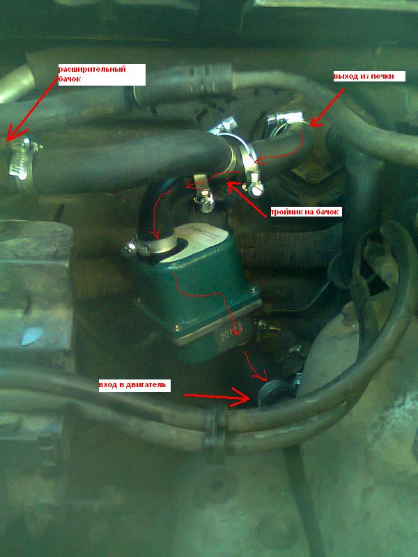 Можешь схемку установки набросать. Когда дрыгатель заведен охлаждайка через него циркулирует?