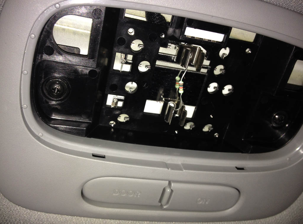 Далее - установка диодов в плафоны. Тут все просто - контакты параллельно лампам, так что вынимаем и вставляем, соблюдая полярность.
