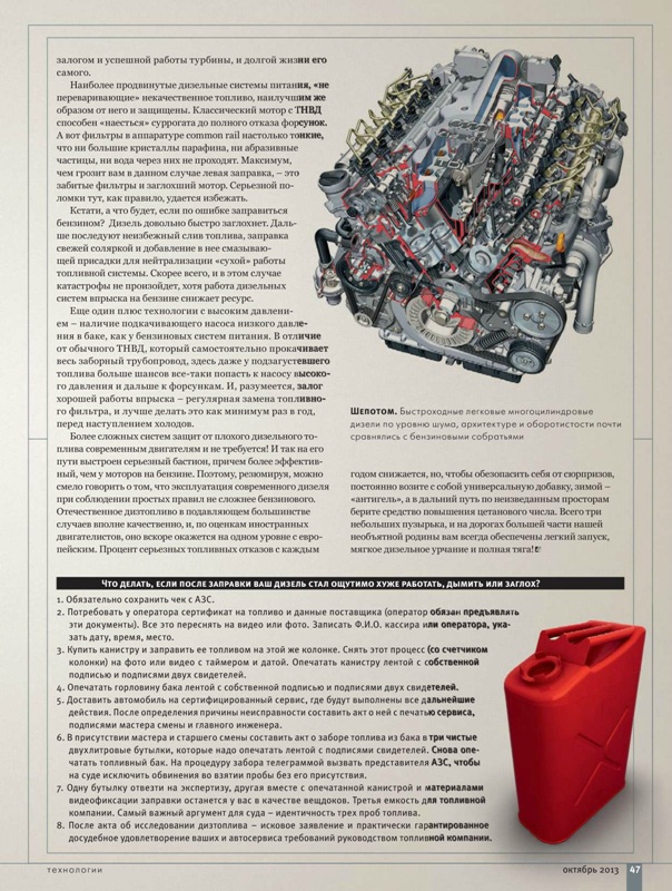 в инструкции к Астрохиму в частности сказано, что добавление антигеля в топливо надо производить выше определенной температуры. Выше температуры замерзания геля и парафинизации топлива. На практике это околонулевая температура, единицы градусов плюс, такая температура бывает обычно у заправляемого топлива из подземных баков АЗС. А сам антигель предварительно подержать в тепле, не дать ему замерзнуть на морозе.Андрей.л писал(а):Опять-же интересно: антигель замерзает намного раньше ДТ, и если влить его в ДТ намного больше нормы, может получиться так, что избыточная его часть не войдет в реакцию с топливом, и замерзнет в виде сгустков, ..