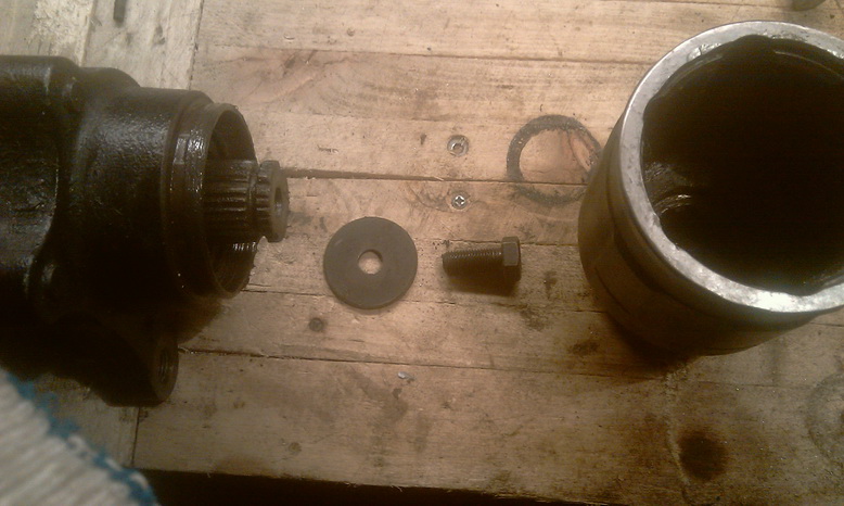 Дааа, позвонили мне и мы там что-то не поладили по телефону. Короче, под руку сказали нехорошее. Вот я и сломал метчик с горяча. 1 см метчика остался на глубине в 1 см. Внутри вала. При попытке достать его, там же были оставлены, ручки натфелей, часть головки на 6, гвозди и т.д. Запрессовали еще сильнее :) Плюнул. Собрал. Поехал.