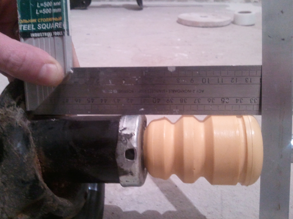 12. Из заранее купленного комплекта пыльников на амортизаторы на hyundai tucson (Kayaba 910064) достаем отбойник и обрезаем первую "фалангу". Получилось, то что нужно 173 мм.