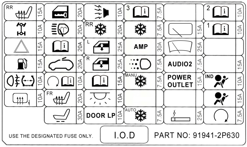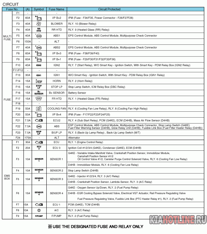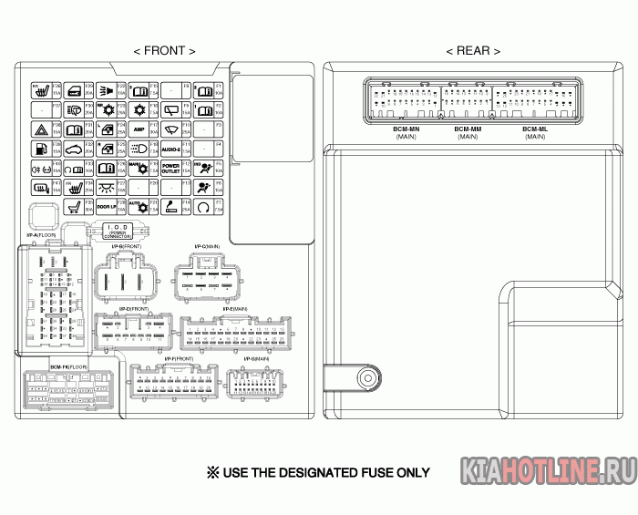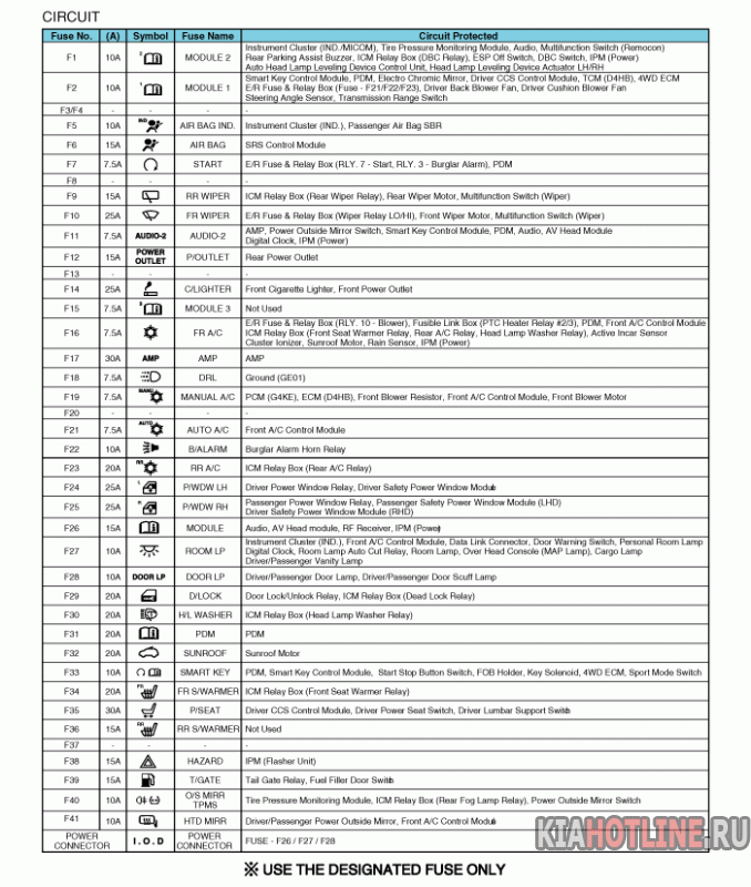 Блок реле и предохранителей Kia Sorento XM (2009+). Описание предохранителей и реле