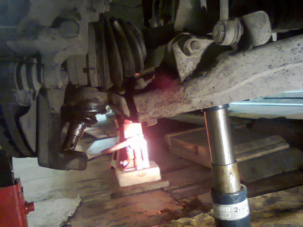 Nikolay0812 писал(а):1.Машина вывешиваем на подъемник 3.Откручиваем гайку и несколькими точными ударами молотка по поворотному кулаку,добиваемся выпрессовке пальца(наверно можно использовать съемник,если имеется)