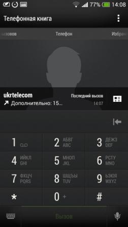 Стандартный номеронабиратель. В настройках два варианта отображения. Полноэкранная клавиатура и интеллектуальная.