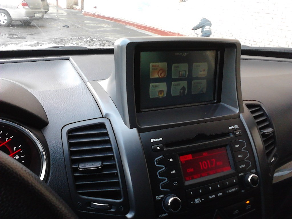 Ринат, по сути это обычный переносной 7-дюймовый навигатор, установленный на постоянной основе. Какие варианты решения я вижу для системы на фотографии:
