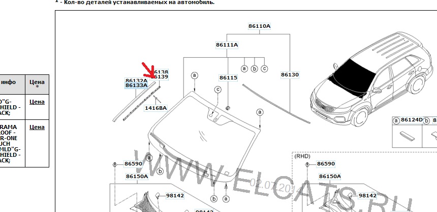 есть 86131-2P010 Молдинг ветрового стекла левый