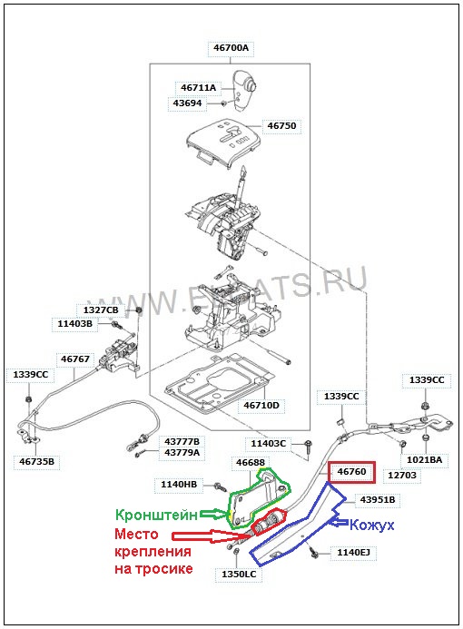 Короче решил менять тросик. Судя по статье с драйв2 на рестайл нужна деталь 46700-3E921 (трос коробки передач АКПП):