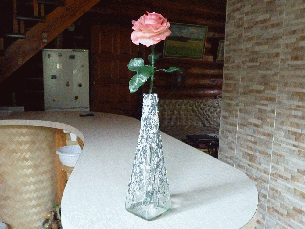Бутылку я декорировала,а роза и листья из пластичной массы.