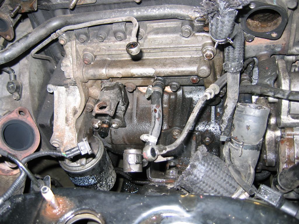 я менял 4 ( красные ) прокладки 26461-47282 , 2 ( черные ) 26460-4A000 , прокладку всего корпуса маслоохладителя , прокладка выпускного коллектора была в порядке , прокладку термостата 25126-42060 . Турбину я снимал в сборе с выпускным коллектором . Прокладку приемной трубы сажал на полупрозрачный слой герметика LOCTITE 5920 CAT№24055