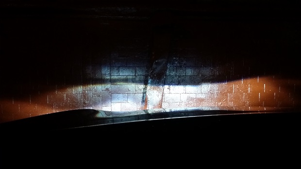 - линза даёт достаточно хорошую границу светового пучка поверху, эквивалентного штатной галогенной лампе;