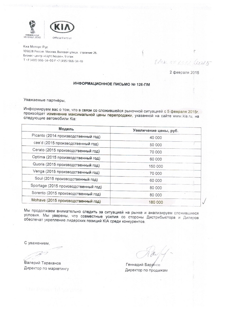 dimasimal писал(а):ну вот, ценник на соренто вырос еще раз!
