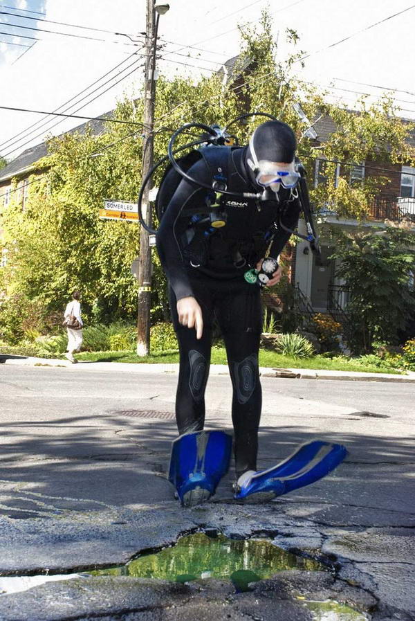 Принято считать, что плохие дороги с ямами это чисто русское изобретение, но оказывается с этой бедой сталкиваются не только в России. Это доказывает фотопроект "Ямы", авторы Дэвид Лучиано (Davide Luciano) и Клаудия Фикка (Claudia Ficca). К работе над проектом были привлечены друзья и знакомые авторов, из таких городов как Монреаль, Торонто, Нью-Йорк, Лос-Анджелес и др.