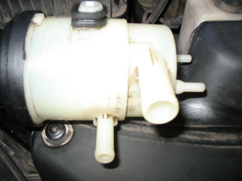 7. Обратку суём в емкость. Заводим авто и крутим рулем в одну сторону до упора.