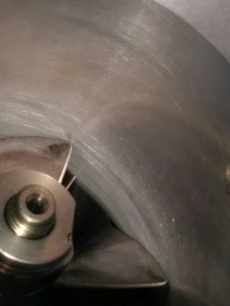 И тут я посветил лампой и увидел на улитке в районе крыльчатке полосы как от зацепов....... Эти полосы есть и выше крыльчатки и что к чем не пойму......