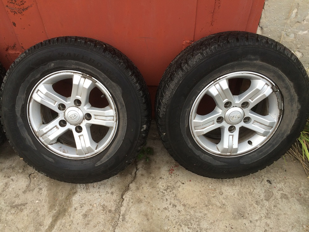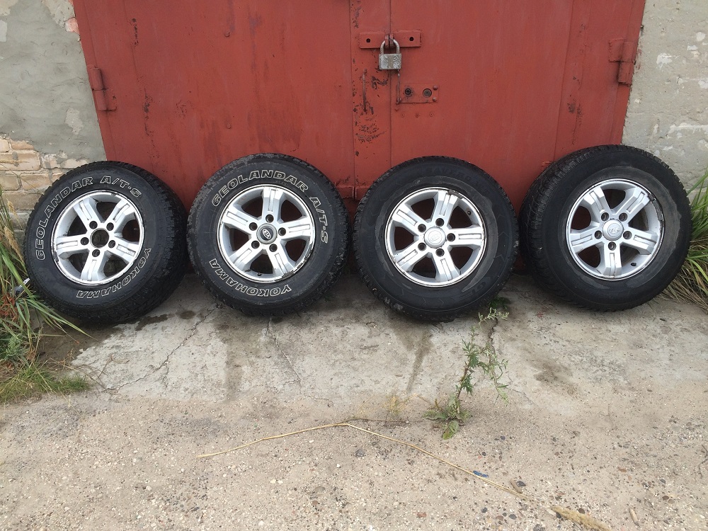Продаю колеса 4 шт. 2 шины Yokohama Geolandar A/T-S G012. Состояние нормальное прошла 2 сезона. 2 шины Savero: состояние на один сезон.