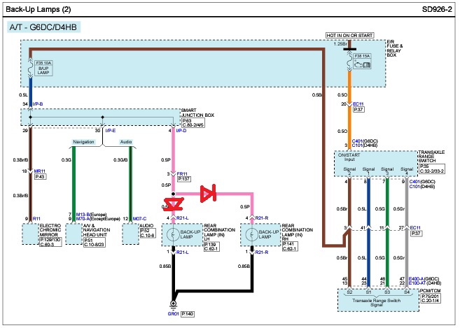 Для исключения подобного глюка в дальнейшем, решил поставить пару диодов в цепь питания ламп заднего хода. Ток там по 1,5 А на лампу. Пока руки до установки не дошли.