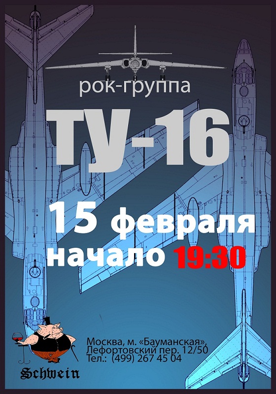 25 января в пятницу, в 20.00 в клубе "Швайн" состоится концерт группы "ТУ-16".