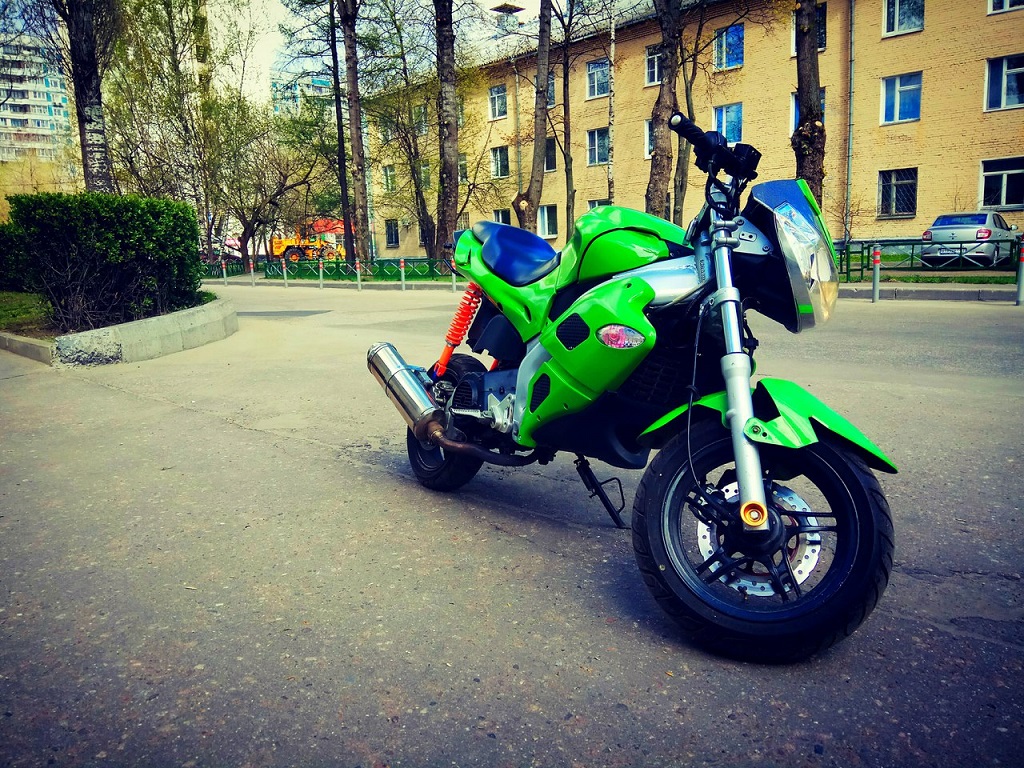 Мопэд не мой, просто разместил объявление. Но я катался и фана много ;))) Отличный скутер, выглядит как спортбайк. Пробег оригинальный 1300км, недавно прошёл первое ТО. Из хорошего Армированные тормозные шланги(дисковые тормоза по кругу) Усиленные амортизаторы с регулировкой, Автозапуск, тюнинговый вариатор. Двигатель 162QMK запчасти копейки и их навалом. Из плохого, пластик боковой красился, аккумулятор лучше заменить. Продаётся т.к. не используется, документы все на руках, продаётся по договору купли продажи с последующим переоформлением.
