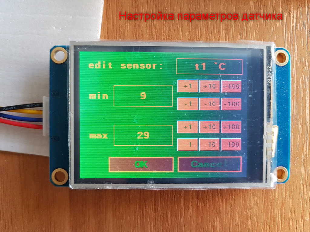 2. Мне кажется, что надо сделать мигание дисплея из зеленого в красный, если какой-либо из датчиков вышел за диапазон. При этом необходимо принудительно переключить дисплей в режим отображения именно этого датчика, если перед этим отображался другой датчик. Яркость дисплея как-либо можно регулировать (особенно автоматически)?
