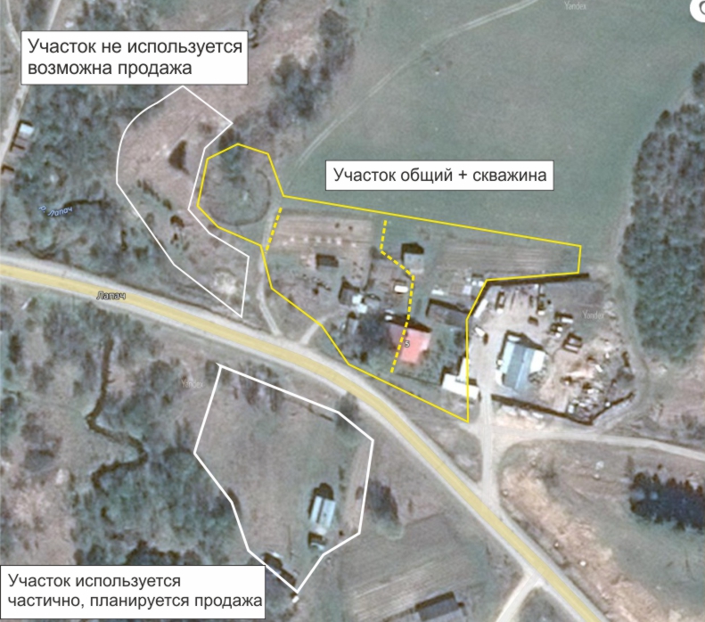 Участок на продажу - наш+соседский+скважина = более 60 соток (обозначен жёлтым)