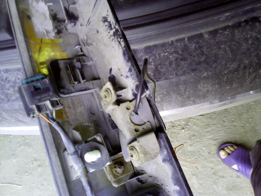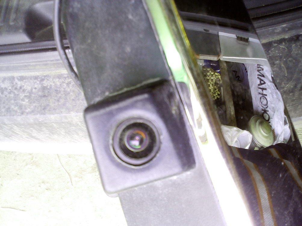 Далее про установку форсунки. Снял всю панель с камерой, подсветкой номера и кнопкой открывания двери. Около камеры просверлил в панельке (она пластмассовая) отверстие 6 мм и маленькими надфилями придал ему нужную форму по стопорные усы форсунки.