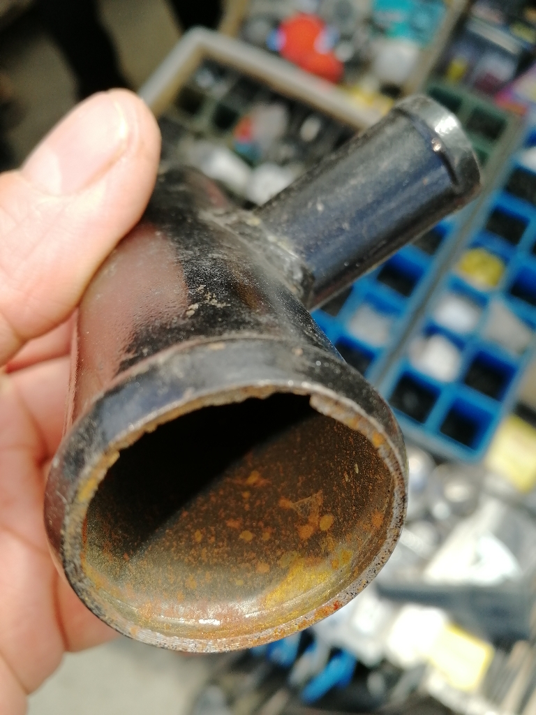 Пластиковые тройники ставить не вижу смысла, что бы в дороге не развалился. Была идея поставить из полипропилена, но температура у них, желательно не выше 90, но в интернете полно людей которые ставят из полипропилена тройники и ездят не один год. Есть автомобильные на 32*18*32, но так как они сделаны из металла, то коррозия будет, на фото видно как он уже начал корродировать.