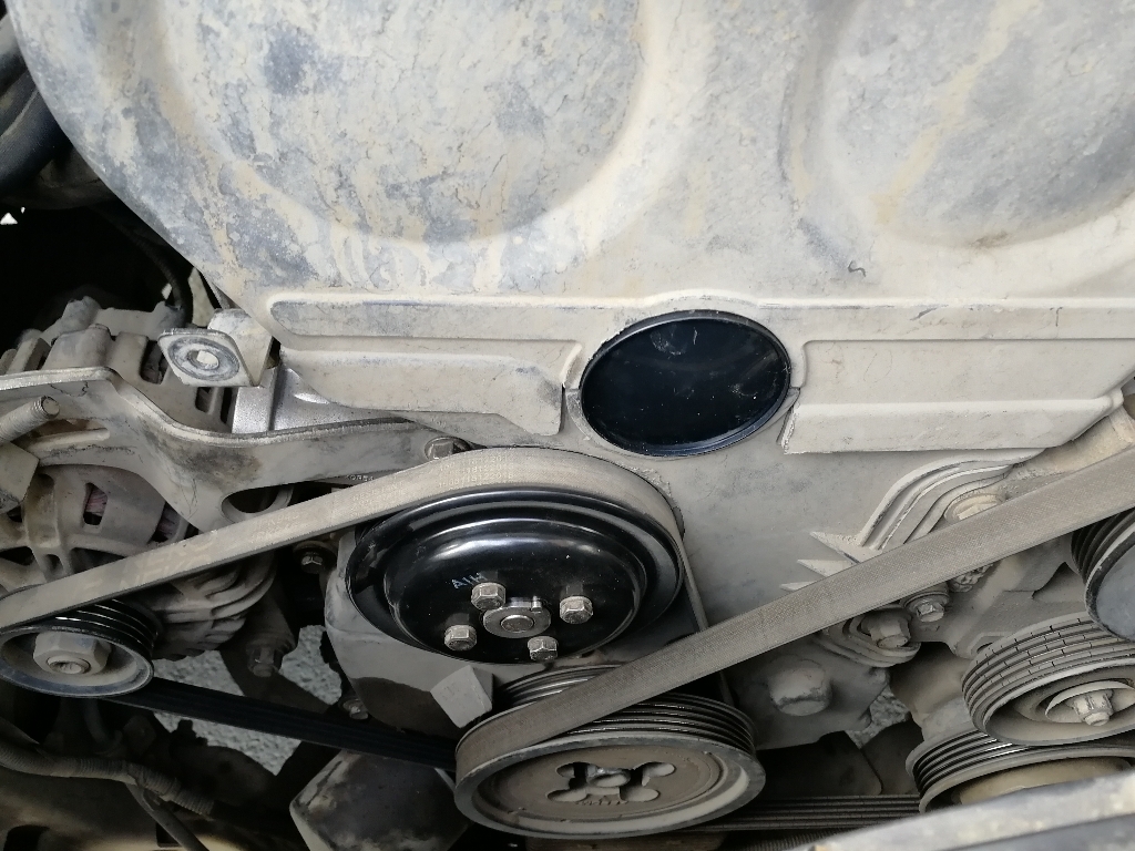 Металлическая прокладка соединена с ещё одной прокладкой которая уходит виз двигателя, так видно устанавливается с завода, с помощью небольших клепок, можно конечно отрезать ножом соединение прокладок и тогда она полностью отделиться. Но так как прокладку отдельно не заказывал, потому что с помпой она уже шла, только не металлическая, а бумажная. В итоге не стал ставить бумажную прокладку поверх металлической, оставил металлическую.
