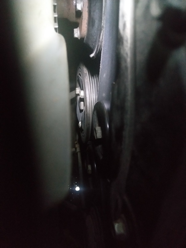 Открутил-закрутил с моментом,удерживая шкив цепью за раму. Менял сверху, через демонтаж вискомуфты. Старый шкив после откручивания снялся легко. Места много работать удобно.....
