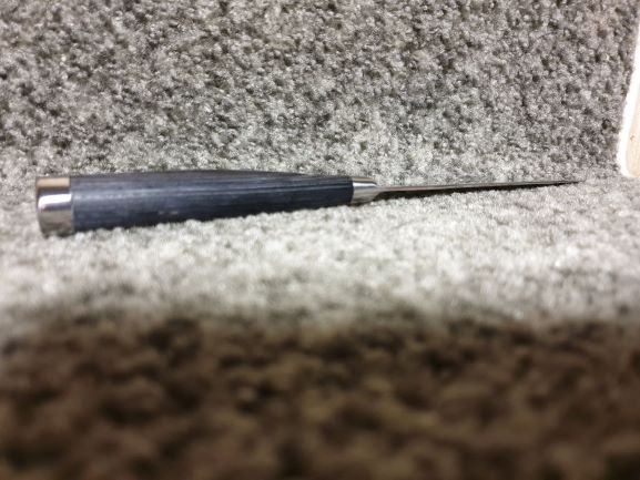 ТТХ: длина клинка 125 мм, ширина 28 мм, толщина 1,5мм, рукоять эбеновое дерево, длина 110мм, больстер и тыльник из нейзильбера. Общая длина- 235мм. Масса 88 грамм. Спуски от обуха. Заточен в бритву. Цена 3000 руб., с моим пересылом почтой РФ.