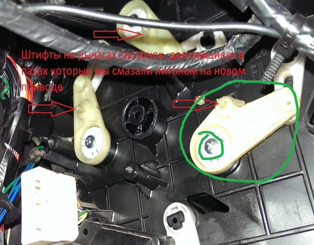 Вот теперь понятно,а точнее: поставить обдув в ноги,снять моторчик,снять этот рычаг совсем,поставить всё на место... :wink: