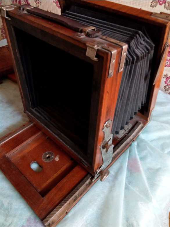 1. Фотокамера ФК 13х18 в деревянном корпусе. Выпуск примерно 1939 г. (судя по номеру).
