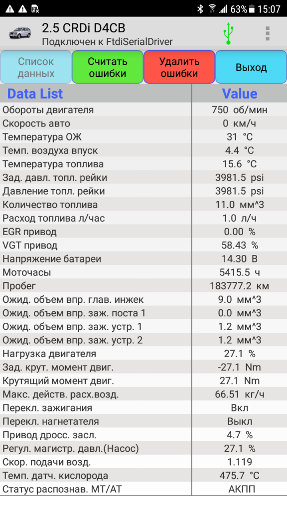 Заодно добавил немного параметров по двигателю 2.5 CRDi. Скоро выложу новую версию и еще выложу программу в магазин AppGallery,