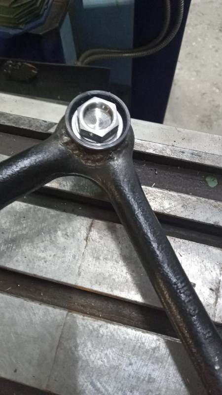 Позже уже сделал еще 1 рычаг из тех, что с авто снял, на ту сторону, где обваривал по кругу. Тоже СТР, получилось оч плотно, запрессовывал прессом шаровую, но так и не поставил по итогу, езжу на обваренной.