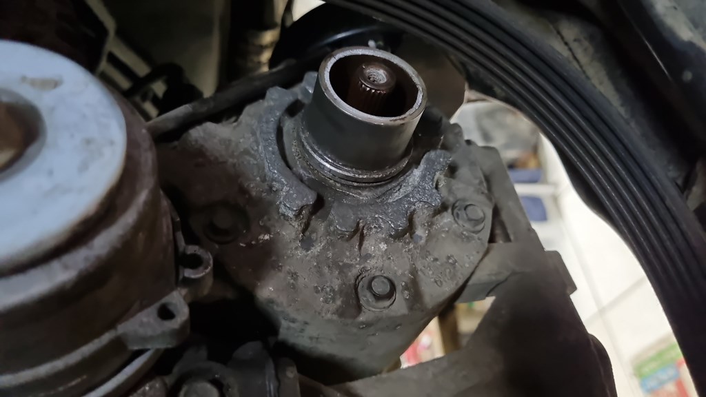 при демонтаже шкива отломился кусочек вала (корпуса компрессора) ровно по канавке стопорной шайбы - так что используйте съёмник и не ленитесь максимально приопустить/ослабить подрамник