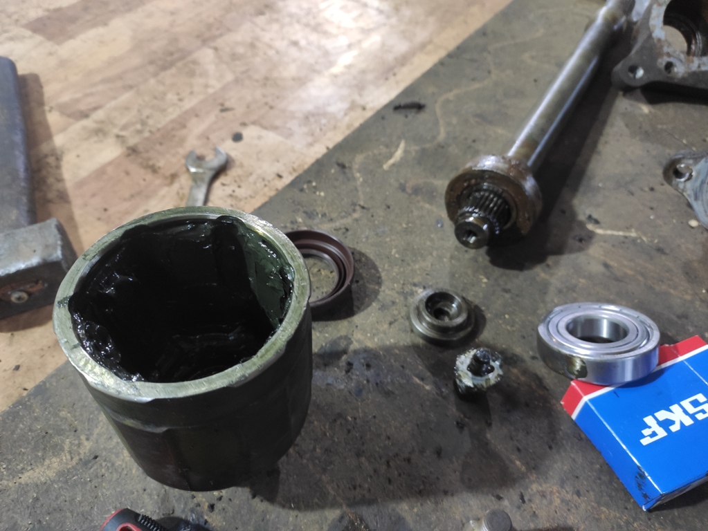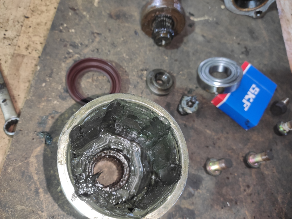Результат пробега 300+т.км на фото. Заменил сальник и подшипник. Старый подшипник с большим люфтом но не рассыпался