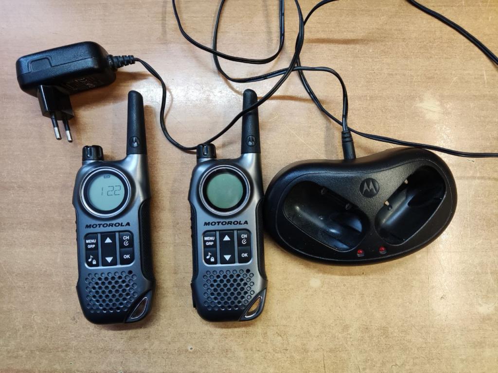Весь заводской комплект - зарядка\стакан, клипсы на ремень, затычка в стакан для зарядки батарейки без рации(одна, не уверен, что вторая вообще была).