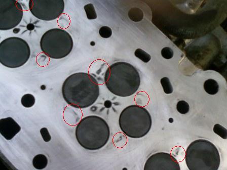 вмятины на поверхности ГБЦ во всех 4-х цилиндрах (как будто побито чем то мелким),